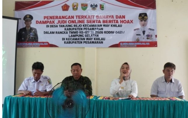 Kegiatan berupa sosialisasi bahaya judi online dan penyebaran hoaks tersebut digelar di Balai Desa Tanjung Rejo, Kecamatan Way Khilau, Rabu (25/2/2026).
