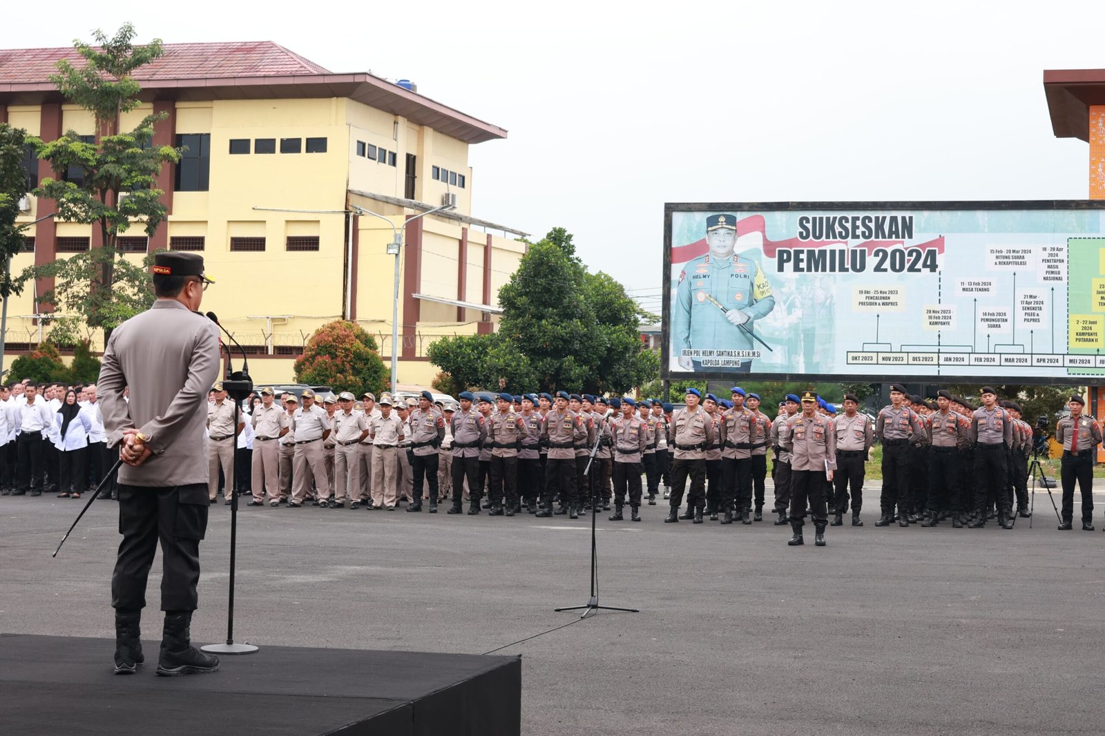 Bandar Lampung (Duasisi.co.id) : Kapolda Lampung, Irjen Pol Helmy Santika menghimbau kepada seluruh personil yang ada agar Peka Terhadap Situasi Pilkada 2024.Intruksi tersebut diutarakan saat memimpin apel pagi dilapangan Mapolda Lampung,Senin (12/8/2024).