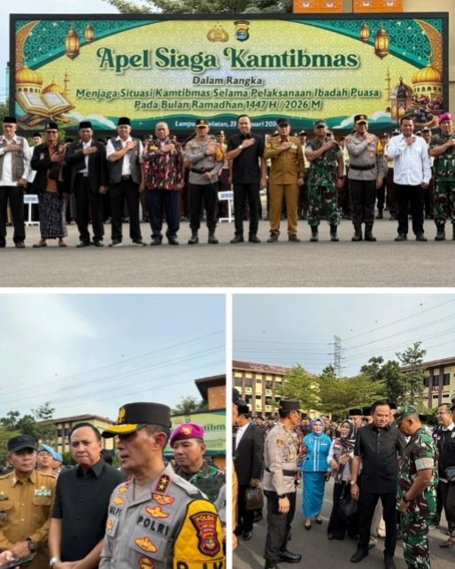 Apel Siaga dipimpin oleh Kapolda Lampung dan diikuti oleh peserta dari berbagai instansi sebagai wujud komitmen bersama dalam memberikan rasa aman dan nyaman kepada masyarakat selama Ramadan 1447 H. (Rls)