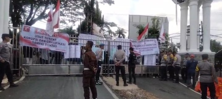 Di saat yang sama, Kantor Kejaksaan Tinggi (Kejati) Lampung didatangi massa dari Lembaga Swadaya Masyarakat Bersatu yang menggelar aksi unjuk rasa.